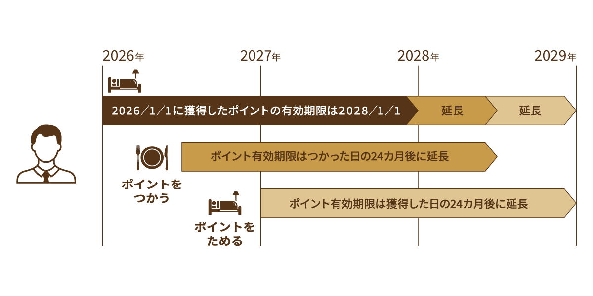 ※ポイントの積算方法ならびにポイント数は、ホテル・施設・ご利用プランにより異なる場合がございます。