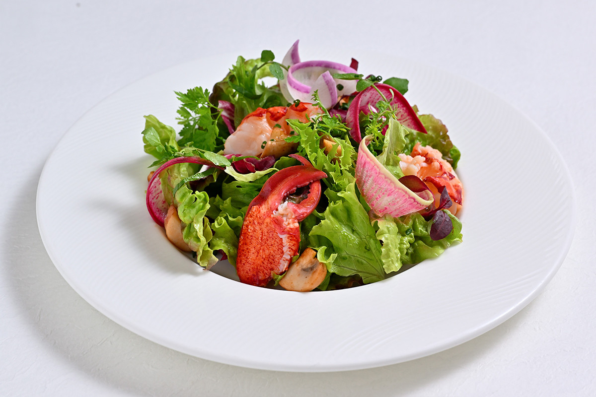 ◎オマール海老と茸の温かいサラダ バジルの香り