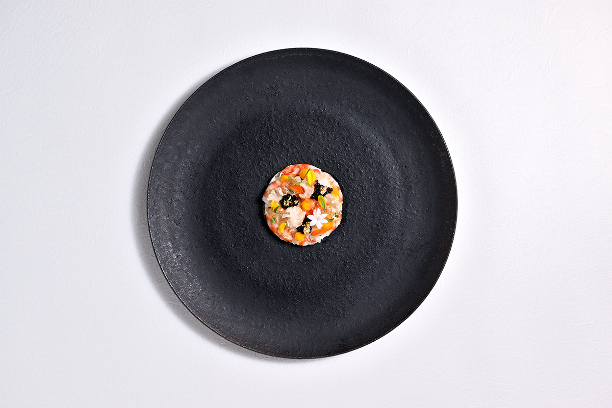 五島の澄んだ海で育った新鮮な鮮魚や自然豊かな環境で育ち、赤身と脂身のバランスが良く旨みが凝縮された五島牛をメインに、旬の食材を織り交ぜながら巧みな技法と繊細な盛り付けで表現するシェフのスペシャリテです