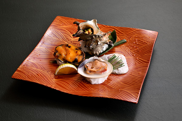 五島列島が育む「海の至宝」。芳醇な香りの アワビやサザエ、ハマグリなど、深い磯の香りと旨味を凝縮したこれらの素材は、まさしく自然が育んだ最高の傑作。洗練された空間で、五島の豊かな海を感じる珠玉の美食体験をお楽しみください。