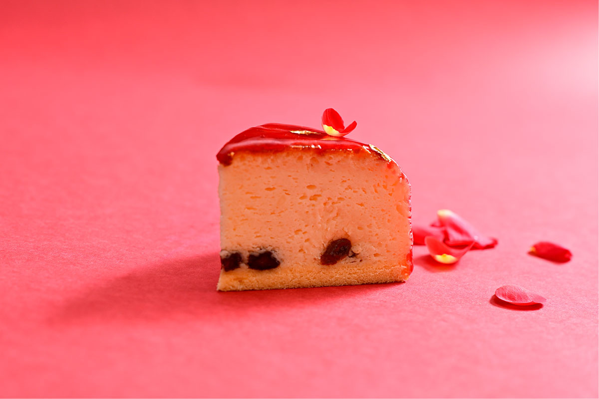 母の日に向けた特別なケーキをご用意致しました。「ありがとう」の気持ちを、華やかなケーキに込めて。ふんわり軽やかなスフレフロマージュに、苺とフランボワーズの甘酸っぱいコンフィチュールを重ねました。中に忍ばせたレーズンが、やさしいコクと余韻を添える母の日限定の一品です。